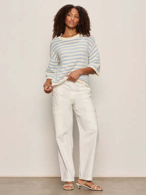 The Sanctuary Elle Sweater Tee combines comfort with effortless style. Crafted from 100% cotton in a medium-weight fabric, this relaxed-fit essential features a classic crew neck, short sleeves, and a single chest pocket for practical detail. The soft, breathable construction makes it perfect for layering or wearing solo. Available in a serene Collagen/Blue Aura colorway that transitions beautifully across seasons. Pull-on design for easy wear.