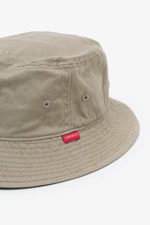 Pre-shrunk cotton twill bucket hat with red brand name tag. Cotton 100% Made in Japan Size : M - Height 7.5cm, Circumference 58.5cm, Brim Length 5cm