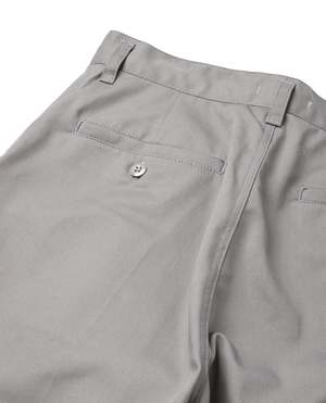 These are relaxed-fit trousers with front tucks, made from T/C twill fabric. The material is a reproduction of the twill used by the British military, analyzed and recreated to capture its authentic military look. It also features a water-repellent finish for added functionality. Material: 67% Polyester, 33% Cotton.