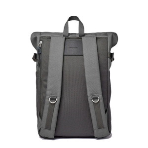 Water-resistant and functional backpack from Sandqvists Urban Outdoor series constructed from 100% recycled polyester. Features a 13 laptop compartment and can carry up to 18 L. Heritage leather details and recycled webbings trimmings. The tight and dense weave provides durability and resistance to abrasions, tears, and scuffs. Lining is made from 100% recycled polyester. Capacity: 14/18 L Main compartment: W 26 x H 38 x D 12 cm Laptop compartment on backside: W 26 x H 34 x D 2 cm Rolltop closure One large outer zipper pocket One inner mesh pocket Compression straps on each side YKK zippers Padded and adjustable shoulder straps.