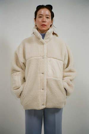 By Sandy Liang Cream fleece in unisex shape Made with recycled fleece Functional ripstop patch pocket at chest and sleeve Buttons at front Logo-engraved silver-tone hardware Lilac mesh lining