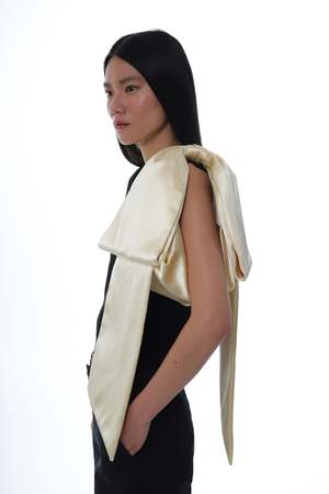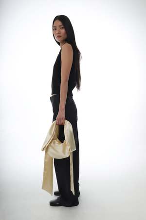 By Sandy Liang Small shoulder bag in Butter Made in a heavyweight satin Oversized bow detail Snap button closure