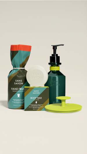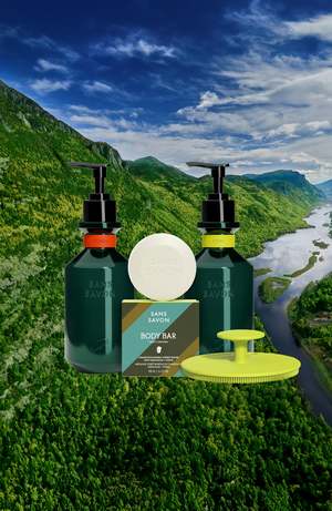 The Sans Savon Starter Set features soap-free products designed to clean and nourish your skin without stripping its protective barrier. Ideal for sensitive or dry skin, this lather-free set leaves skin clean, balanced, and hydrated. Formulated with naturally derived antimicrobials to remove 99.9% of microorganisms that cause body odor and bacteria. Microbiome-friendly with prebiotics to support healthy skin. Infused with the Charlevoix Boreal Blend: sustainably sourced essential oils of balsam fir, white and black spruce, with unique secondary notes in each product. Rich in fatty acids to nourish and moisturize.