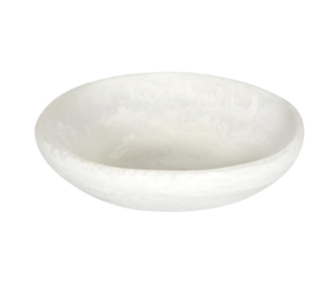 This resin bowl is great for indoor or outdoor dining. The bowl is perfect for displaying your favorite salad, pasta or sides when entertaining. Each resin piece has variation in swirled color.
