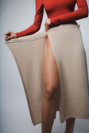 Sitting at the waist and extending below the knees, the Mila wrap skirt in Sand creates a chic and elegant silhouette, perfect for a multitude of occasions. Made from luxurious Italian cashmere with an elasticized waistband that features an Italian gold button to the side, and an adjustable tab with button closure on the inside of the waist. Fit: Bianca, our model is 5.8 or 1.76 m tall and wears size 1. Made from a medium-weight knit, the skirt is approximately 32 (80cm) long. Content: 100% eco cashmere. Easy care instructions: - Wash in warm water with cashmere or wool shampoo. Lay flat to dry. - For easy care, dry cleaning recommended. Made in a family-owned factory in Romania. A sustainable wardrobe starts with buying less and using longer. We want to ensure you love your purchase and wear it for seasons to come. Title tag SANTICLER Italian eco cashmere wrap skirt in Sand Description tag Ultra soft and luxurious, the Mila wrap skirt in Sand Beige is made from Italian eco cashmere and features an adjustable elasticized waistband. Each piece is ethically manufactured in Romania. Google product category Apparel & Accessories > Clothing > Skirts > Knee-Length Skirts Gender female Age group adult Condition New Custom product false
