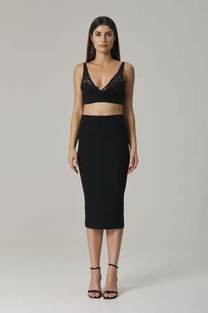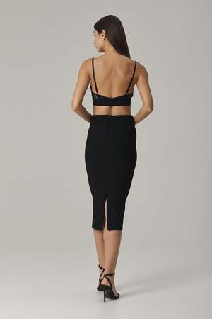 Made from a dense stretch fabric, the Naomi skirt is knitted with no side seams and features a built-in tummy compression panel for a smooth, hourglass silhouette. A center back concealed zipper that opens from the hem upwards adjusts the silhouette and enables ease of walking. Wear yours with the matching bralette or with an oversized sweater for a dressed down attitude. Featured in Black. Size and Fit: - Fits true to size. Take your regular size. - Meant to sit at waist. - Features a center back zipped slit to adjust for silhouette and easy walking. - Bianca, our model is 5.8 or 1.77 m tall, and wears size 1. Content and origin: - Yarn: 80% viscose 15% polyamide 4% elastane 1% polyester elite - Center back closure: concealed zipper Yarn and fabric origin: Italy Crafted in a family-owned factory in Romania. Care instructions: - Wash inside out on the gentle cycle with like colors. Lay flat to dry. - For easy care, professional dry cleaning is recommended. - Fold and store. Long term hanging is not recommended. If you need more information on how to care for your sustainable garment, please email us at Contact@iconoclaststudio.com