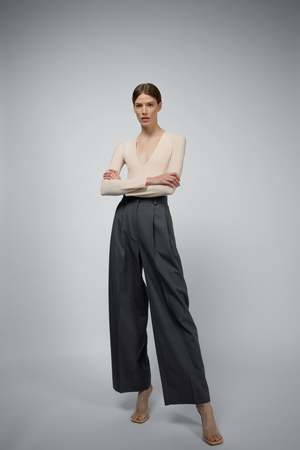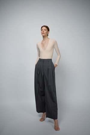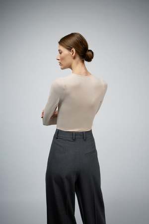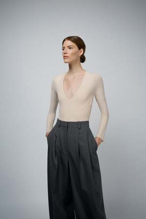 At Santicler, every piece is designed with versatility and ease of care in mind. The Nova is the newest addition to our range of best selling bodysuits. Featuring a narrow, deep v-neck with clean edges and slender long sleeves, it can be worn on its own or as a base layer. A comfortable brief cut panty with seamless edges and easy-snap closure ensure ease of wear and a perfectly smooth, no lines appearance. Made from our signature micro jersey, the fabric is thin but dense, and conforms to the shape of the body. The front panel is double layer for increased coverage and hold. Sourced from a leading mill in Italy, the fabric is Oeko-Tex certified to be free of harmful chemicals. Machine washable and wrinkle resistant, the Nova is simply a must have. Our model is 5'7" (1.75cm) and wears size 0. For additional sizing information, please click here to visit the sizing guide page. Content: 73% Nylon + 27% Elastane Easy care instructions: - Wash in cold water with like colors. Do not bleach! - Tumble dry low heat; use cold iron if necessary. Made in a family-owned factory in Romania. A sustainable wardrobe starts with buying less and using longer. We want to ensure you love your purchase and wear it for seasons to come. If you need more information on how to care for your sustainable garment, please contact us! We would be happy to hear from you. Contact@iconoclaststudio.com Title tag Micro jersey Double Layer V-neck Bodysuit in Cream Description tag The Nova v-neck bodysuit is made from Italian micro jersey and features a double layer front panel, long sleeves and a comfortable snap closure. Machine washable and perfect for travel. Enjoy free shipping to North America! Google product type Apparel & Accessories > Clothing > Shirts & Tops Gender Women Condition used Custom product FALSE Condition new Custom product false Age group adult Gender female