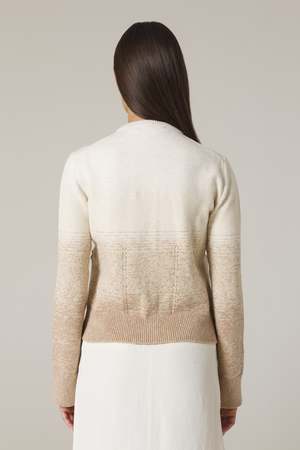 The Una cardigan is the perfect layering piece. Made from a soft and lofty cotton blend yarn, the sweater features an engineered ombr gradient pattern and a placket closure with hammered metal gold buttons. An undisputable staple piece, wear yours with everything in your closet, from jeans to flowy skirts and over summer dresses. Shown here in Sand Combo. Size and Fit: - Fits true to size. Select your regular size. - Regular length, slim silhouette, button closure and pockets - Bianca, our model is 5'8 or 1.77 m tall and wears size 1 Content and Origin: - Fabric: 53% Cotton (BCI certified), 27% Recycled Polyester, 20% Nylon - Buttons: Gold plated metal - Fabrics and trims origin: Italy - Made in a family-owned factory in Romania Care Instructions: - Hand wash inside-out in cold water with like colors, or machine wash on gentle cycle. Do not bleach. Lay flat to dry. - Professional dry cleaning ok.