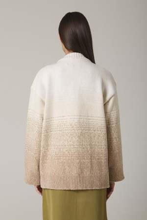 With its open front, dropped shoulders, and relaxed silhouette, the Wadim cardigan is the perfect transition sweater. Made from Italian cotton blend yarn, the hand feel is incredibly soft to the touch. The cardigan features an engineered ombr gradient pattern that matches beautifully when layered over the Yedda dress or worn with other items in your wardrobe. Shown here in Sand Combo. Size and Fit: - Fits true to size. Select your regular size. - Hip length, relaxed silhouette, drop shoulders, pockets, and side slits. - Bianca, our model, is 5'8" (1.77 m) tall and wears size 1. Content and Origin: - Fabric: 53% Cotton (BCI certified), 27% Recycled Polyester, 20% Nylon. - Fabrics and trims origin: Italy. - Made in a family-owned factory in Romania. Care Instructions: - Hand wash inside-out in cold water with like colors or machine wash on gentle cycle. Do not bleach. Lay flat to dry. - Professional dry cleaning is acceptable.