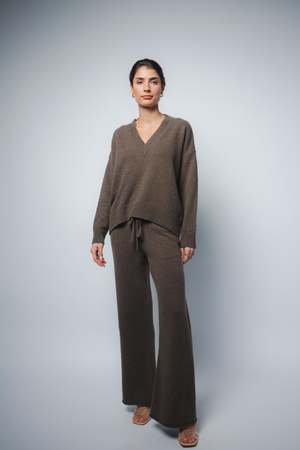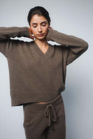 The best selling Crista sweater in Chestnut has a relaxed fit with drop shoulders, a flattering v-neck and a high-low hemline. Made from Italian eco-cashmere, it is the perfect wardrobe staple for the cold season. Fit: Bianca, our model is 5.8" or 1.77 m tall and wears size 1. Made from a medium-weight knit, the sweater measures approximately 23" (58 cm) long at front and 25" (63 cm) long at back . Content: 100% cashmere. Easy care instructions: - Wash in warm water with cashmere or wool shampoo. Lay flat to dry. - For easy care, dry cleaning recommended. Made in a family-owned factory in Romania. A sustainable wardrobe starts with buying less and using longer. We want to ensure you love your purchase and wear it for seasons to come.