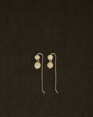 Suspended elegance. Each earring features one-of-a-kind vintage deadstock ivory beads, hanging from a delicate loop and connected to a handmade post crafted from recycled sterling silver. Designed for both everyday wear and special occasions, this pair effortlessly blends Sapir's artistic detail with Colbo's refined aesthetic.