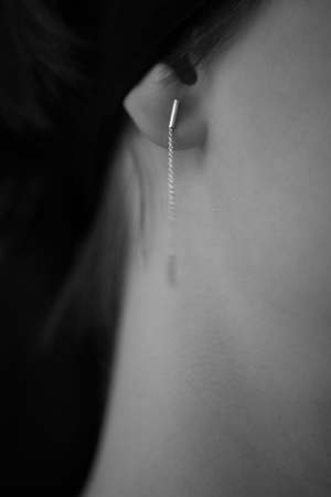 Simple and delicate chain-earrings, length approximately 5,5cm. The diameter of the chain is approximately 1mm. Material is 18 karat gold or Sterling silver. Variations are cubic for box chain, a chain made out of little cubes or round for trace chain, a chain made of little rings.
