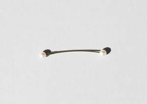 A piece for pierced ears, with a sphere on each side on a slightly bent wire. The model is wearing Pearl. The pink/green one is made of Jade-Tourmaline Stones and 925 Sterling Silver. The pearl one is made of fresh water pearl and 925 Sterling Silver. One piece. Made in Munich.