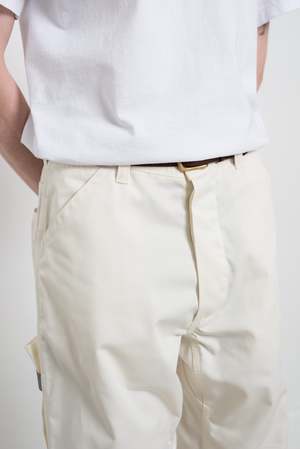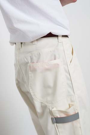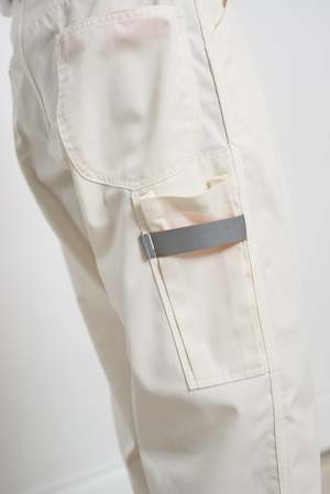 65% polyester, 35% cotton 90% polyester, 10% polyurethane reflective parts T/C chino weave fabric Made in Japan Title tag Pruner Pants T/C Chino White / Calculus Victoria Description tag 65% polyester, 35% cotton 90% polyester. 10% polyurethane reflective parts. T/C chino weave fabric. Made in Japan. Age group adult Gender male Color White