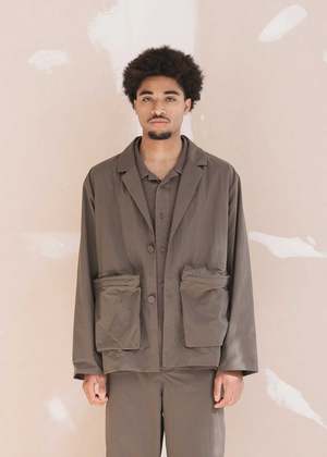 This jacket combines utility and comfort with the traditional blazer style, utilizing a technical nylon shell and a matching ultralight lining to ensure perennial comfort. The blazer has a relaxed fit with a two-button closure, notched lapels, and wide cuffs. Utility comes in the way of two gusseted zip pockets at the front and an additional multi-pocket system at the lining, providing plentiful storage space. 100% nylon. Model is 6ft 1" and wears size M.