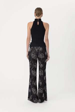 The Dunn Top is a sleeveless knit halter with a mandarin collar. Hand-tied pipa knots trace the neckline and slit hem for a signature finish. Pair with the Brooklyn Pant for an everyday look or style it up with the Venus Skirt for an evening affair.