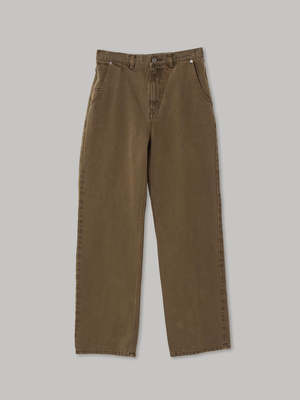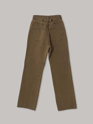 SAYAKA DAVIS straight-leg denim features a low-rise design with a dropped inseam and a slightly voluminous straight-leg silhouette for a relaxed, effortless look. Straight-line side pockets and an adjustable waist belt at the back add key details. Made with organic cotton sourced from Turkey, this 14.5-ounce denim maintains classic weight while offering a soft touch. The unique unevenness and fading effect are achieved through a hybrid dyeing process that combines charcoal and chemical dyes for a distinctive finish. Details: - Front zipper and button opening - Adjustable waist belt at back - Front and back pockets - Made of 100% Organic Cotton fiber - Made in Japan Sustainability: Organic cotton is grown without synthetic pesticides or fertilizers, using 91% less water, 62% less energy, and reducing greenhouse gas emissions by 46%. This sustainable choice supports healthier soil, water conservation, and biodiversity. Model is 59 / 175cm tall and wears a size S. Size Guide (inches): XS: Waist 14 1/4, Hip 19 1/4, Side length 40, Rise 10 1/4 S: Waist 15 1/4, Hip 20, Side length 40 1/2, Rise 10 1/2 M: Waist 16, Hip 20 3/4, Side length 41 1/4, Rise 10 3/4 L: Waist 16 3/4, Hip 21 3/4, Side length 42, Rise 11