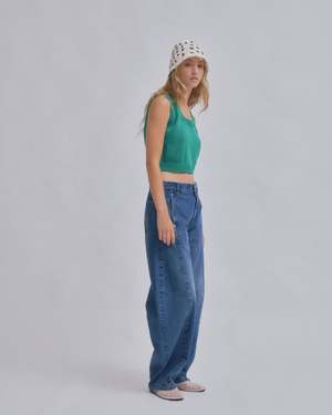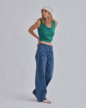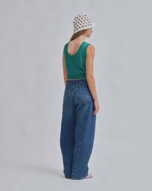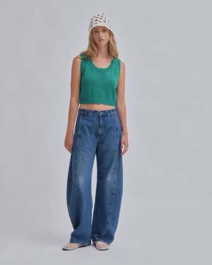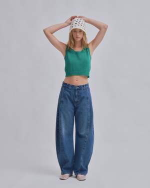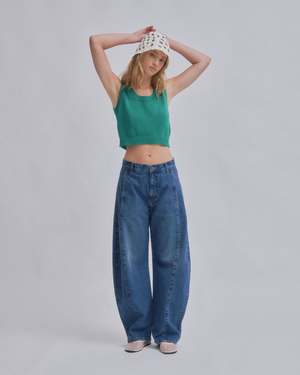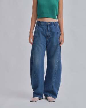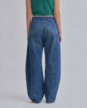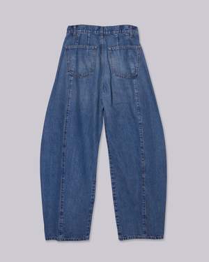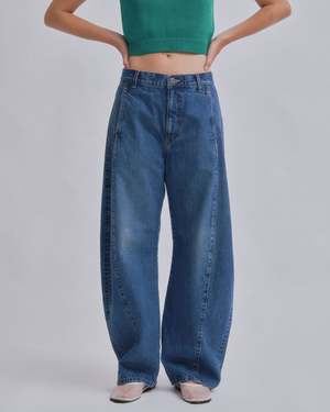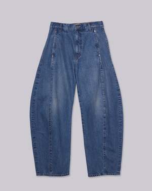Introducing SAYAKA DAVIS' new barrel denim. Featuring a low waist that creates a sleek fit around the hips and a design with front and back panel seams that sculpt a three-dimensional curve around the knees. This versatile piece fits various heights, enhancing each individuals unique appeal. It pairs effortlessly with both compact and relaxed-fit tops, adding a fresh accent to any silhouette. This product is available to pre-order, will ship by 3/20.