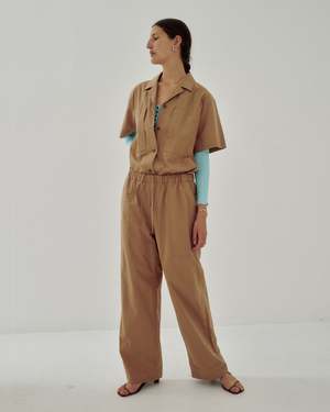 This item is available for pre-order and will ship by March 27. An iconic SAYAKA DAVIS coverall in organic cotton. The adjustable elastic waist and floating front panel allow for versatile stylingtied, tucked in, or left out. Pair with heels for a dressier look, or with sneakers and sandals for everyday wear. A piece designed to move seamlessly across occasions. Short sleeves, elasticized waist, button closure, and side slip pockets. This typewriter fabric is crafted from long-staple organic cotton sourced from India. It undergoes the Omi bleaching process in Japan to achieve a natural, wrinkled texture and exquisite bounciness. 100% organic cotton. Made in Japan. Sizing (inches) Size: XXS / XS / S / M / L Length: 57.3 / 58.3 / 59.3 / 60.5 / 61.5 Shoulder: 17.8 / 18.0 / 18.5 / 19.0 / 19.3 Bust: 20.0 / 20.8 / 21.8 / 22.5 / 23.3 Waist: 13.5 / 14.3 / 15.3 / 16.0 / 16.8 Hem: 9.8 / 10.0 / 10.3 / 10.5 / 10.8 Sleeve length: 17.3 / 17.8 / 18.0 / 18.5 / 19.0 Rise: 11.0 / 11.3 / 11.5 / 11.8 / 12.0 Inleg: 28.3 / 28.8 / 29.3 / 29.8 / 30.3 The model is 59 (175 cm) tall and wears a size M.
