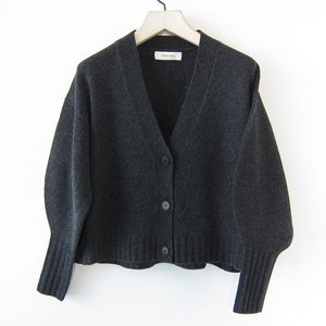 This super soft and cozy long sleeve drop-shoulder cropped cardigan features a v-neck, rib-finished neckline and button band, asymmetric hem, and distinctive balloon-silhouette sleeves shaped at the hem with wide ribbed cuffs. 100% merino wool front: 22.5" L / back: 24.5" L (measured from high-point-shoulder) See all goods from Sayaka Davis