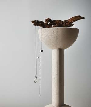 Isa Necklace, designed and made in NY, made of sterling silver. This design is inspired by Noguchi Isamu's work and his words, "It is there, it is always there." The top is hand carved in wax. Made to order, delivered in 2-3 weeks. Made in NY Sterling Silver Bell diameter: 18mm (11/16"), 12mm (1/2")
