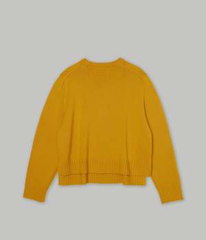 A boxy, mid-gauge pullover featuring side slits and a stepped hem with a cropped back length for a modern touch. Its perfectly balanced silhouette pairs effortlessly with a variety of bottoms, from midi skirts to straight-leg and cacao-leg trousers. Slip on. Relaxed fit. Side slit. Knitted in jersey stitch using multiple strands of 19.5-micron mulesing-free fine merino wool, this fabric has a plush, voluminous finish. The multi-strand construction enhances durability, minimizing pilling while offering a subtle sheen and a clean, refined look. Mulesing-free wool is produced without the harmful practice of mulesing, where skin is removed from a sheeps tail. This humane approach ensures ethical sourcing, making the wool more sustainable and cruelty-free. 100% Wool (Mulesing-Free) Made in China. The model is 59 / 175cm tall and wears a size XS-S.