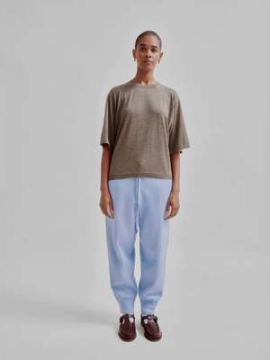 SAYAKA DAVIS knit sweatpants. Unlike traditional jersey sweatpants, this piece features the refined texture and soft touch unique to knitwear. Made from a blend of organic cotton and wool yarn, it is interlock-knitted to create a fabric that is comfortable to wear even in early autumn when warmth lingers. With just the right amount of structure, it drapes beautifully without clinging to the body, offering a clean silhouette. Pair it with the matching knit sweatshirt for a cohesive look. Description Elastic waist Pull-on Front pocket Detail Made from a blend of soft organic cotton and cashmere wool yarn, knitted in interlock to create a spongy texture with just the right amount of firmness, resulting in a unique feel. Organic cotton is grown without synthetic pesticides or fertilizers, using 91% less water, 62% less energy, and reducing greenhouse gas emissions by 46%. This sustainable choice supports healthier soil, water conservation, and biodiversity. Organic Cotton 94% Wool 3% Cashmere 3% Made in China. The model is 59.5 / 177cm tall, wears a size S.