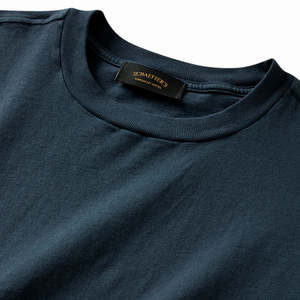 The Oversized Indigo Dyed Tee from Schaeffer's Garment Hotel, Hollywood. Details - Drop shoulder oversized fit - Cotton milled in Los Angeles - Garment-dyed washed blue - Blind hem stitching on sleeve and body - Made in Hollywood, CA.
