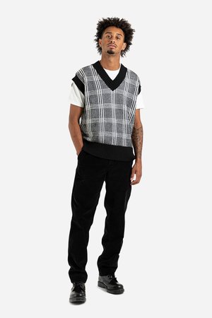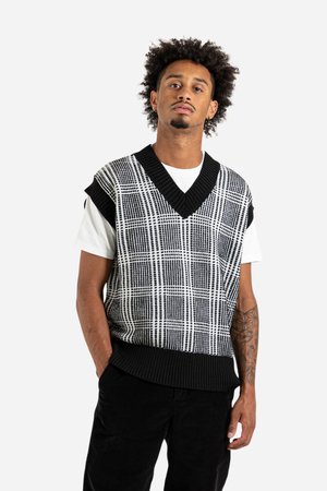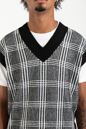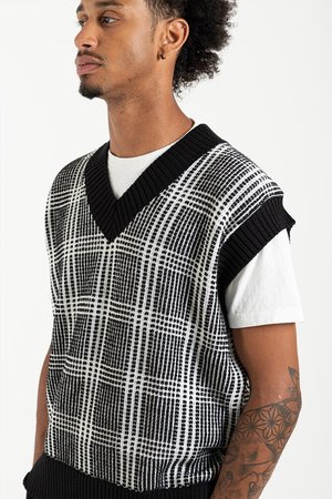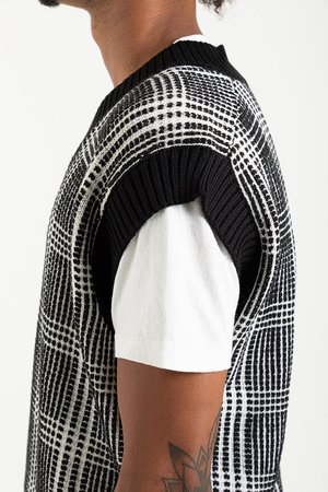 Schnayderman's Vest Wool Check in Black & White Weve got a fever, and the only prescriptionis more sweater vests! Schnaydermans brought the good stuff with the Vest Wool Check, a soft medium-weight knit with a chunky contrasting plaid. A defining feature of the Vest Wool Check is the exaggerated ribbed hems which lay flat and give the piece a uniquely bold style. The big V-Neck collar looks fantastic over a button-up, but you could even wear this Schnaydermans beauty as a cold-weather tank top. Schnayderman's FW21 Collection