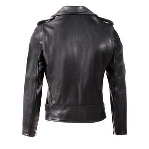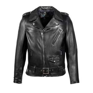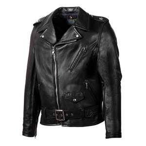 The Perfecto 519 biker jacket is one of our most loved leather motorcycle jackets in a midweight pebbled cowhide. - 26" back length - Midweight pebbled cowhide - Large back panel design - Nickel hardware - Vintage Schott Perfecto Label - Double needle stitched shoulder epaulets with "One Star" - Snap down lapels and collar - Bi-swing back - Zippered sleeve cuffs with wind flaps - Attached snap down belt with buckle - Three outside zippered pockets, plus Small coin flap pocket - Lower inside map pocket - 1 diamond 3oz Polyfill insulated fixed quilt body liner - Made in the USA Age group adult Gender unisex Condition new Custom product false
