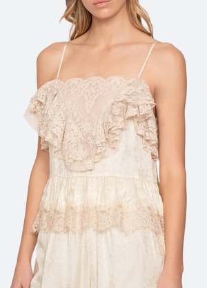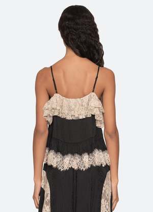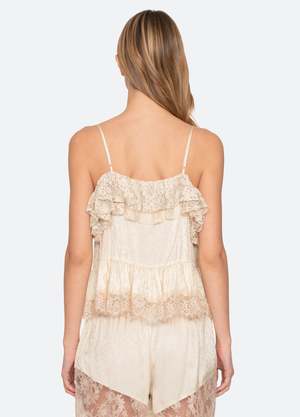 The Ethel camisole features a delicate floral motif with a lace-trimmed hem and a lace overlay framing the V-neckline. Finished with adjustable straps, it's a romantic and feminine piece that elevates everyday dressing. Details: - Self: 100% viscose - Lace 1: 64% nylon, 36% cotton - Lace 2: 100% nylon - Slip-on style - Designed for a relaxed fit - Style #SS26-016 - Model is 5'10" and wearing a size S PRE-ORDER: EXPECTED DELIVERY 1/253/5.