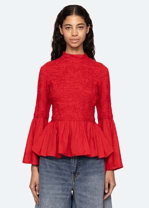 The Imogen long sleeve top features intricate pintuck detailing and a high neckline. Voluminous sleeves and a flared peplum hem create a romantic yet structured silhouette. Details: - Self: 100% Ramie - Cording: 100% Cotton - Button back closure - Invisible side zipper - Designed for a slimmer fit - Style #RS26-039 - Model is 5'10'' and wearing a size 4 PRE-ORDER: EXPECTED DELIVERY 10/15-11/15