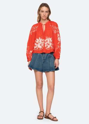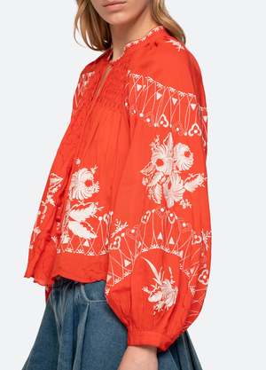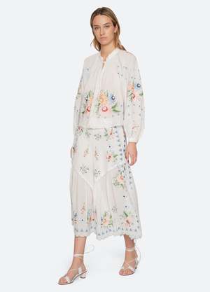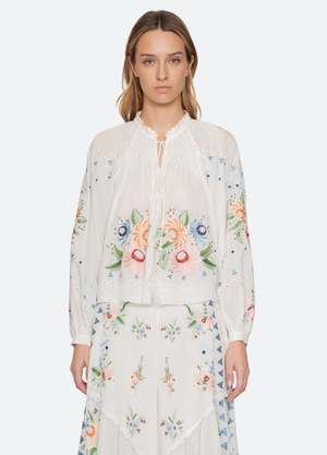 The Serafina embroidered top features long sleeves and intricate floral embroidery throughout, complemented by a flatter V-neckline. Finished with a delicate self-tie closure and tassel accents, it offers a romantic, vintage-inspired silhouette. Details: - Self: 55% viscose, 45% cotton - Embroidery: 100% viscose - Button front - Designed for a relaxed fit - Style #SS26-099 - Model is 5'10'' and wearing a size S PRE-ORDER: EXPECTED DELIVERY 2/15-3/20.