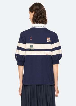 The Claira shirt reimagines workwear with a rugby-inspired silhouette, featuring short puff sleeves, intricate embroidery, and hand-mended detailing. Finished with a partial button-front closure, it balances scholastic structure with feminine charm, creating a distinctive, versatile wardrobe staple. Details: - Self: 100% cotton - Collar: 100% cotton - Rib: 95% cotton, 5% spandex - Embroidery: 100% polyester - Partial button front - Designed for a relaxed fit - Style #SS26-005 - Model is 5'10'' and wearing a size S PRE-ORDER: EXPECTED DELIVERY 1/252/28.