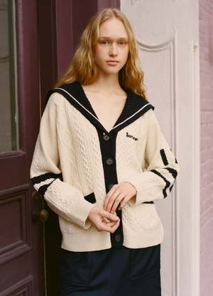 The Maren knit cardigan features intricate cable-knit detailing with ribbed trim and a button-front closure. Finished with delicate embroidery and a knit collar that extends along the back, it's a distinctive take on a timeless silhouette. Details: - 100% wool - Button front - Designed for a relaxed fit - Style #SS26-039 - Model is 5'10'' and wearing a size S PRE-ORDER: EXPECTED DELIVERY 1/20-2/20.