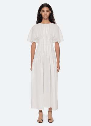 The Violet dress features a maxi silhouette with short sleeves and pintuck detailing at the waist. Its airy, fluid shape offers a modern, effortless look. Details: - Self: 100% cotton - Lining: 100% cotton - Invisible back zipper - Designed for a relaxed fit - Style #SS26-112 - Model is 5'10'' and wearing a size 4 PRE-ORDER: EXPECTED DELIVERY 1/25-2/28.