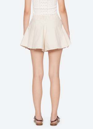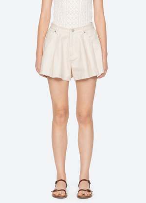 The Stasia denim shorts feature a mini silhouette with an elasticized waistband, designed with large pleats that create a softly flared shape. A modern silhouette that brings volume and movement to everyday denim. Details: - 90% cotton, 10% viscose - button & zipper closure - designed for a relaxed fit, slim waist