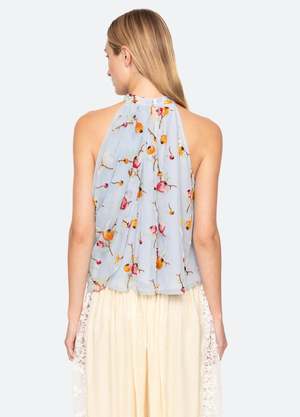 The Freya tank top is crafted from velvet burnout fabric with an all-over fruit pattern and loose pleating for a relaxed, textured look. Featuring a halter neck and an oversized floral accent at the neckline, it blends playful detail with effortless style. Details: - Self: 80% viscose, 20% nylon - Lining: 100% polyester - Button back closure - Designed for a relaxed fit - Style #SS26-064 - Model is 5'10" and wearing a size S PRE-ORDER: EXPECTED DELIVERY 1/202/20.