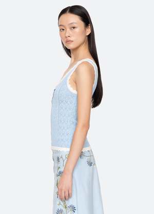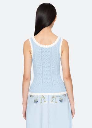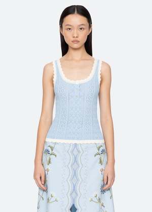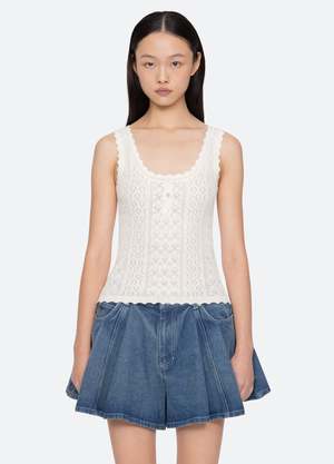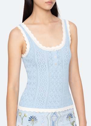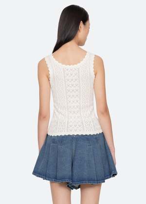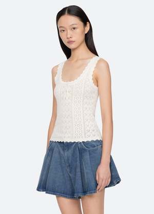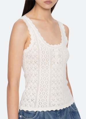 The Georgia knit tank features a delicate pointelle knit, scalloped edges, and a slim, flattering fit. Perfect for layering, it adds subtle texture and refined detail to any ensemble. Details: - 81% viscose, 17% elite - Slip-on style - Designed for a slimmer fit - Style #SS26-067 - Model is 5'10'' and wearing a size S PRE-ORDER: EXPECTED DELIVERY 1/20-2/20.