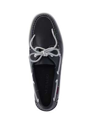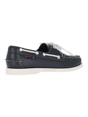 Men > Shoes > Loafers & Boat Shoes Sebago 'Docksides Portland' loafers in navy blue leather with round toe, top band, lace-up closure, contrast details, side logo2 tag, and rubber sole. Composition: 100% Leather.