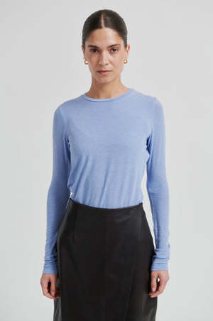 Second Female merino tee made in a soft and stretchy merino blend. Featuring a round neckline and long sleeves with a tight, next-to-skin fit for comfortable layering. - Fine merino and Tencel blend - Rounded neckline - Fit: Slim, tight fit - Long sleeves Composition: - 30% Merino Wool - 60% Lyocell - 10% Elastane Care: - Hand wash - Do not bleach - Do not tumble dry - Iron on low heat - Do not dry clean Shrinkage up to 5%.