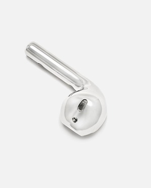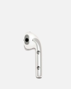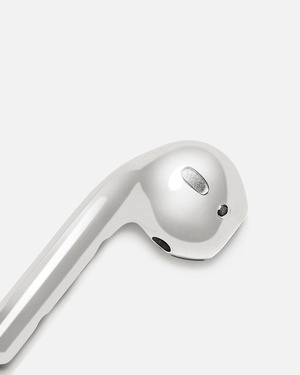 Secret of Manna Airpod earring in silver. This earring is sculpted to look like the new generation airpods and has butterfly clasp closure. Product sku 005-SILVER