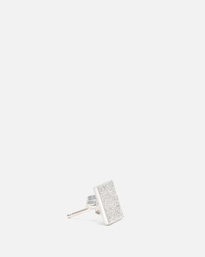 Secret of Manna QR code earring in silver. This stud earring features a QR code inspired pendant and butterfly clasp closure.