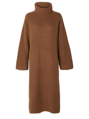 The Elina dress from Selected Femme features a chunky turtleneck and dropped shoulders that give it a loose, oversized fit. This knitted dress is an autumn must-have for days you want to look put together without the effort. - 50% Wool, 50% Recycled Nylon - Chunky turtleneck - Dropped shoulders - Long wide sleeves - Ribbed cuffs and hem - Loose fit - Machine wash at 30C