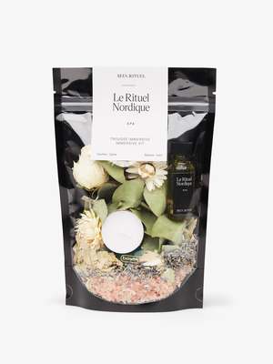 The Experience A turnkey bath ritual. Fresh air and the aromas of lavender and eucalyptus, mixed with the warmth of a hot bath like at the spa. But at home. It's calm. Contents Himalayan pink salt, rose flowers, straw flowers, lavender flowers, eucalyptus leaves, lantern, pack of incense matches, Nordic Ritual botanical oil. 100% vegan, 100% the most original and perfect gift! Ingredients of Nordic Ritual bath and body oil: Eucalyptus essential oil, lavender essential oil, almond oil, argan oil, avocado oil, apricot oil, lavender flowers, eucalyptus leaves, natural fragrance, vitamin E. Usage Simply place all elements in the bath, except for the matches.