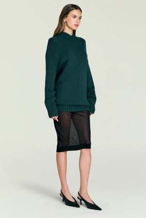 The Lucille Skirt by Ser.o.ya features a high rise and slim fit and is completely sheer. It looks best layered under another skirt or dress or worn with an oversized sweater. Color: Black Fabrication: 56% Viscose, 24% Nylon, 20% Silk Fit Notes: This skirt is intentionally fitted. If in between sizes, we recommend sizing up.