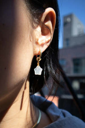 Get playful with these colorful charms and layer up for the fall... it's harvest season! Natural agate earrings made by hand-carving and polishing. Because of the gemstones natural characteristics, each piece may vary slightly in colors and textures. Type: Earrings Details & Specs - Gemstone: agate, width 10mm x length 10mm - Hoop: 14k gold-plated, diameter 12mm - Weight: 4g/pair Care Guide To keep your jade, pearl, and gold-plated jewelry in top condition, avoid impact, as jade is brittle and pearls are delicate. Remove jewelry before swimmingchemicals can cause damageand never shower with gold-plated pieces, as water can cause tarnishing. Avoid harsh cleaners like acids or alcohol; instead, use water or a mild soap solution to keep them looking their best. Colorful agate charm earrings inspired by harvest season. Layer these playful drops with studs or hoops for a fun, fall-ready ear stack.