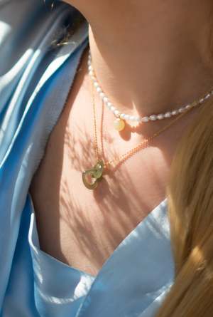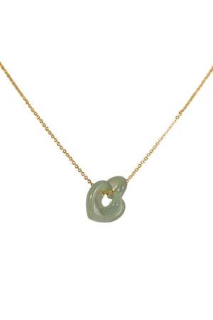 Necklace Nephrite Untreated A duo of interlocking hearts in green nephrite jade on an adjustable gold-plated S925 silver chain. A timeless beauty. Natural and untreated nephrite. Made by handwork of carving and polishing. Because of the gemstones natural characteristics, each piece may vary slightly in colors and textures. Weight: 2g Adjustable chain: Gold-plated S925 sterling silver, length 400-450mm Pendant: Nephrite, 13mm x 15mm x 2mm Product care Avoid knocking against hard surfaces. Jade pieces are brittle and will break when hit with hard objects. Make sure that you take off your jewelry before you go swimming in a pool or hot tub. If youre handing dirt and soil, quartz dust in soil is abrasive to the stone. Avoid cleaning your jade with any acids or alcohol! It is suggested to only apply water or water mixed with mild soap to get it nice and clean. Description tag A duo of interlocking hearts in green nephrite jade on an adjustable gold-plated S925 silver chain. A timeless beauty. Natural and untreated nephrite. Made by handwork of carving and polishing. Because of the gemstones natural characteristics, each piece may vary slightly in colors and textures. Title tag The hearts Interlocking jade pendant necklace | seree Condition new Age group adult Condition new Custom product false Gender female Google product category Jewelry