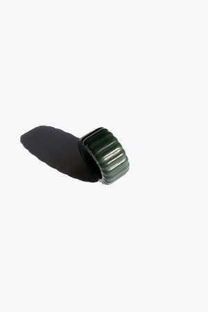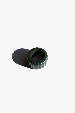 Ring Nephrite Untreated The perfect combination of subtle understatement and bold statement. Crafted with a ribbed band featuring dark green nephrite jade, this stylish ring makes a powerful fashion impact without being too ostentatious. Natural and untreated nephrite. Made by handwork of carving and polishing. Because of the gemstones natural characteristics, each piece may vary slightly in colors and textures. Weight: 10g Thickness: 4mm Width: 13mm Product care Avoid knocking against hard surfaces. Jade pieces are brittle and will break when hit with hard objects. Make sure that you take off your jewelry before you go swimming in a pool or hot tub. If youre handing dirt and soil, quartz dust in soil is abrasive to the stone. Avoid cleaning your jadeite with any acids or alcohol! It is suggested to only apply water or water mixed with mild soap to get it nice and clean.