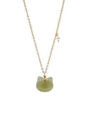 Our homage to the most famous cat in the fashion world, Karl Lagerfeld's constant companion. Named after the French term of endearment meaning "sweetie," our cat green jade pendant necklace is also Seree's Choupette, embodying a perfect blend of elegance and cuteness, complete with a delicate pearl that playfully dangles from the chain. Just like its namesake, our Choupette Necklace is more than jewelry; it's a wearable celebration of style, grace, and the joy of companionship. Whether you're a cat lover, a fashion enthusiast, or someone who appreciates the finer things, let Choupette be your stylish companion, a constant reminder of elegance and sweetness in every moment. Weight: 3g Adjustable chain: 14k gold vermeil, 16" + 1.75" extension Pendant: nephrite, width 14mm x length 10mm x thickness 4mm Material: Nephrite, 14k gold vermeil, faux pearl